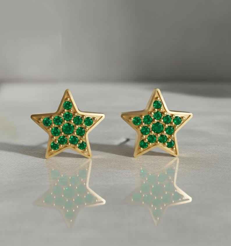 ต่างหูทอง 14K ประดับมรกต, ทับทิม, ไพลิน