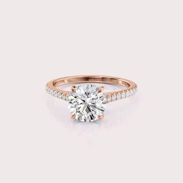 แหวนเพชรทรงกลม 14KT โรสโกลด์ เพชรเลี้ยงในห้องปฏิบัติการ ประดับเพชรแบบปาเว่