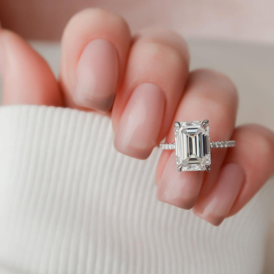 แหวนหมั้นชุบทองคำขาว 14KT ทรงมรกต ประดับเพชรเพทายสังเคราะห์ รับรองน้ำหนัก 3.0-3.8 กะรัต สไตล์ทันสมัย