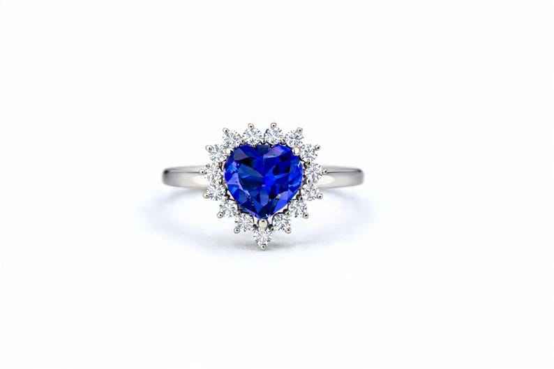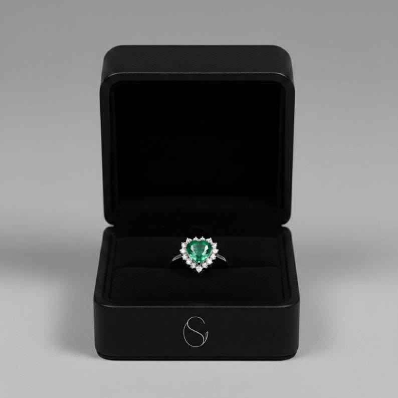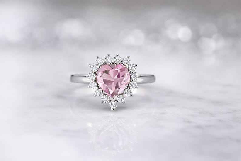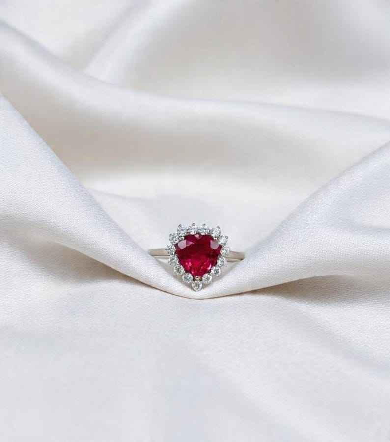 แหวนหัวใจประดับพลอยสังเคราะห์และเพชรสังเคราะห์
