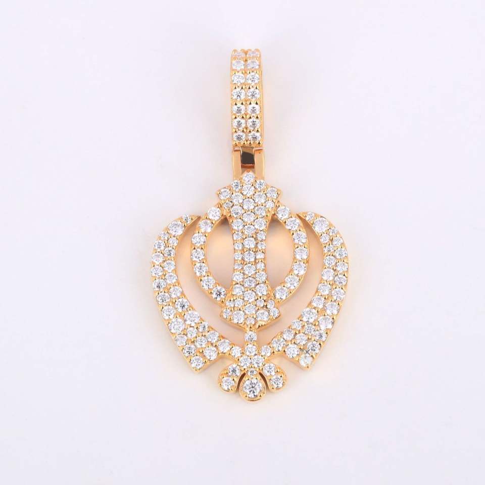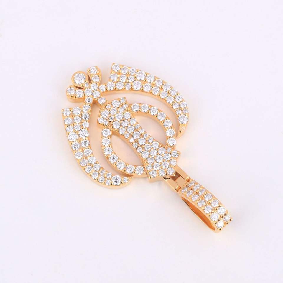 จี้เพชรโมอิสทรงกลมสไตล์ฮิปฮอปจี้โลโก้ออกแบบได้ตามต้องการสีเหลืองทองแบบ14KT
