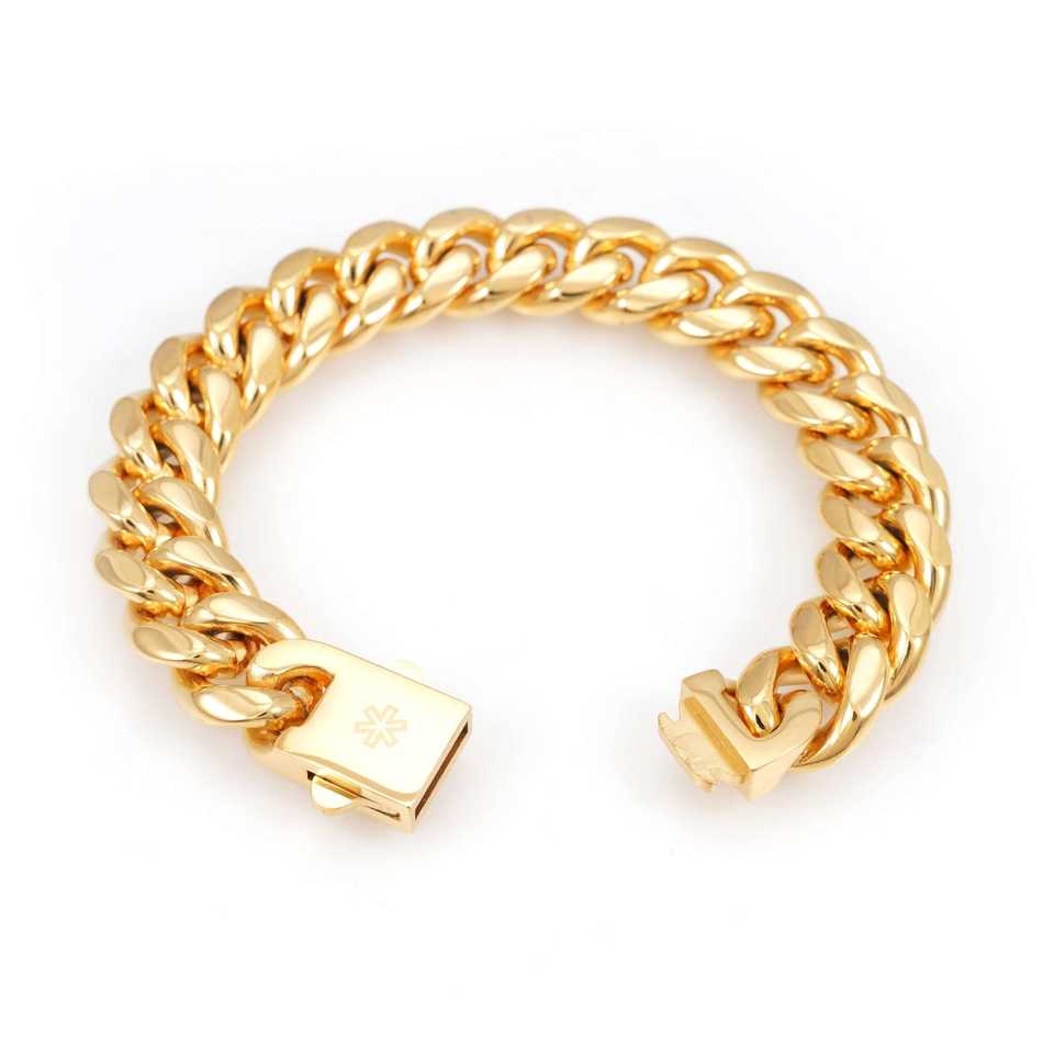 สร้อยข้อมือแบบ Cuban Link ขนาด 14 มม. ลายกากบาท ทองคำขาว 14K ทองคำโรสโกลด์ 18K สไตล์ศาสนา วัสดุหลักเป็นสร้อยข้อมือเทนนิส ประดับเพชรและไข่มุก