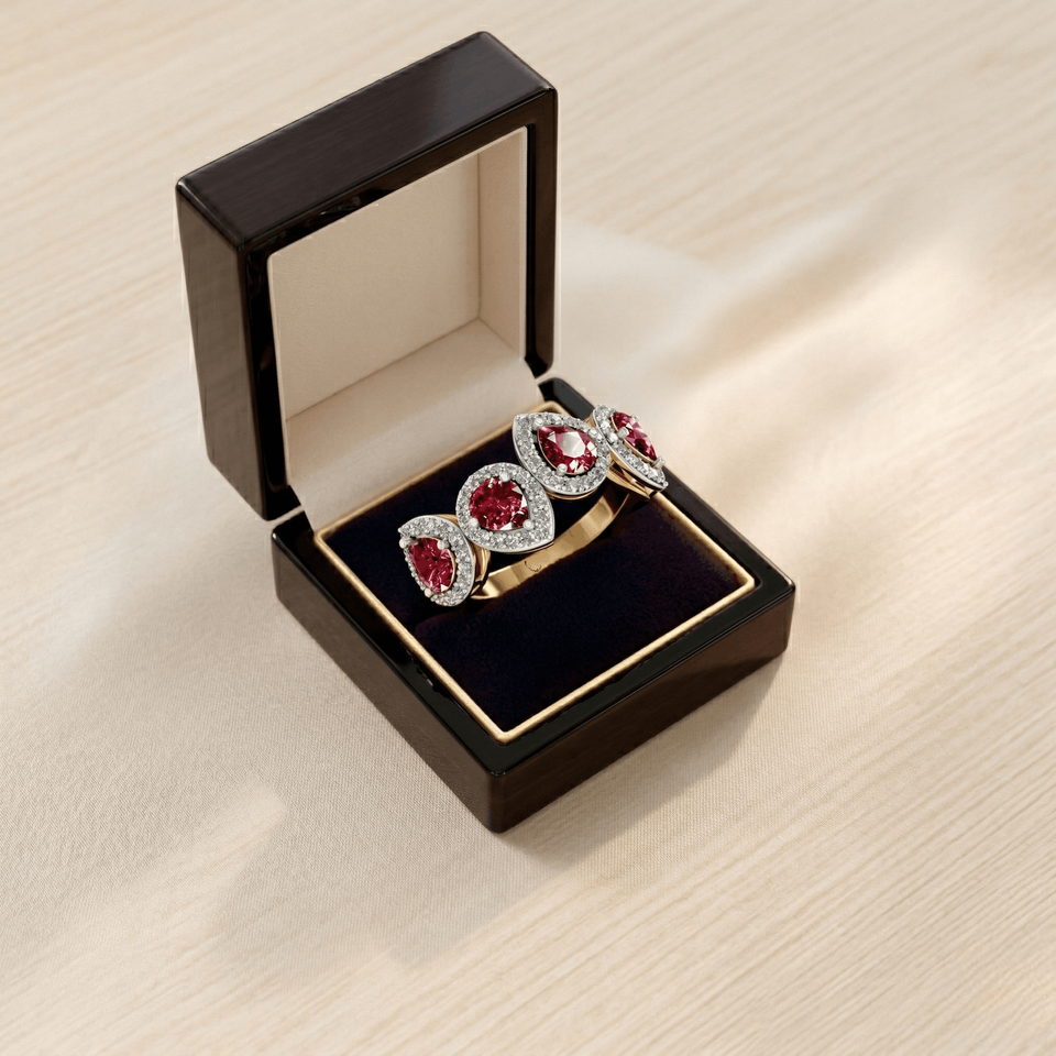 4 Stone Natural Pear Shaped Red Ruby Gemstone Ring