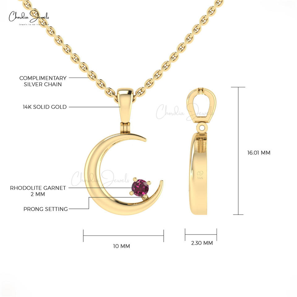จี้พระจันทร์เสี้ยวทอง 14k ประดับด้วยโรโดไลต์การ์เนตแท้ 0.05 กะรัต จี้สั่งทำพิเศษสำหรับเทศกาลคริสต์มาส สินค้าขายส่ง
