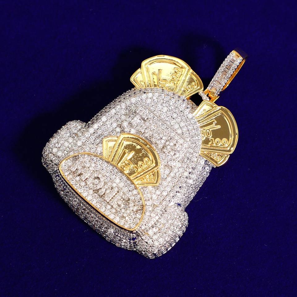 กระเป๋าสีทอง14K จี้เพชรแบบกำหนดเองจี้สุดเก๋จี้เพชรโมอิสซาไนท์สำหรับผู้ชายผู้หญิง
