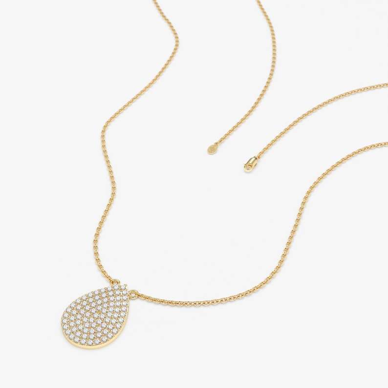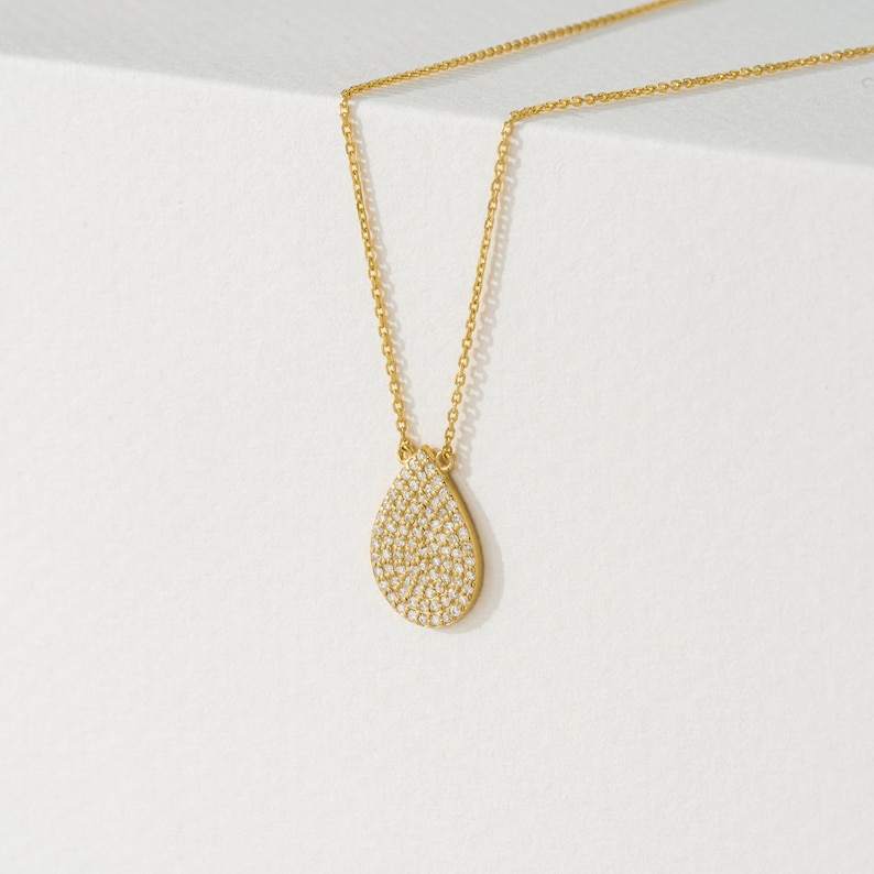 สร้อยคอทรงหยดน้ำประดับเพชรสีทอง14K, สร้อยคอประดับเพชรขนาดเล็ก, สร้อยคอแผ่นดิสก์อันโอชะ, สร้อยคอเจ้าสาว, ของขวัญแต่งงาน