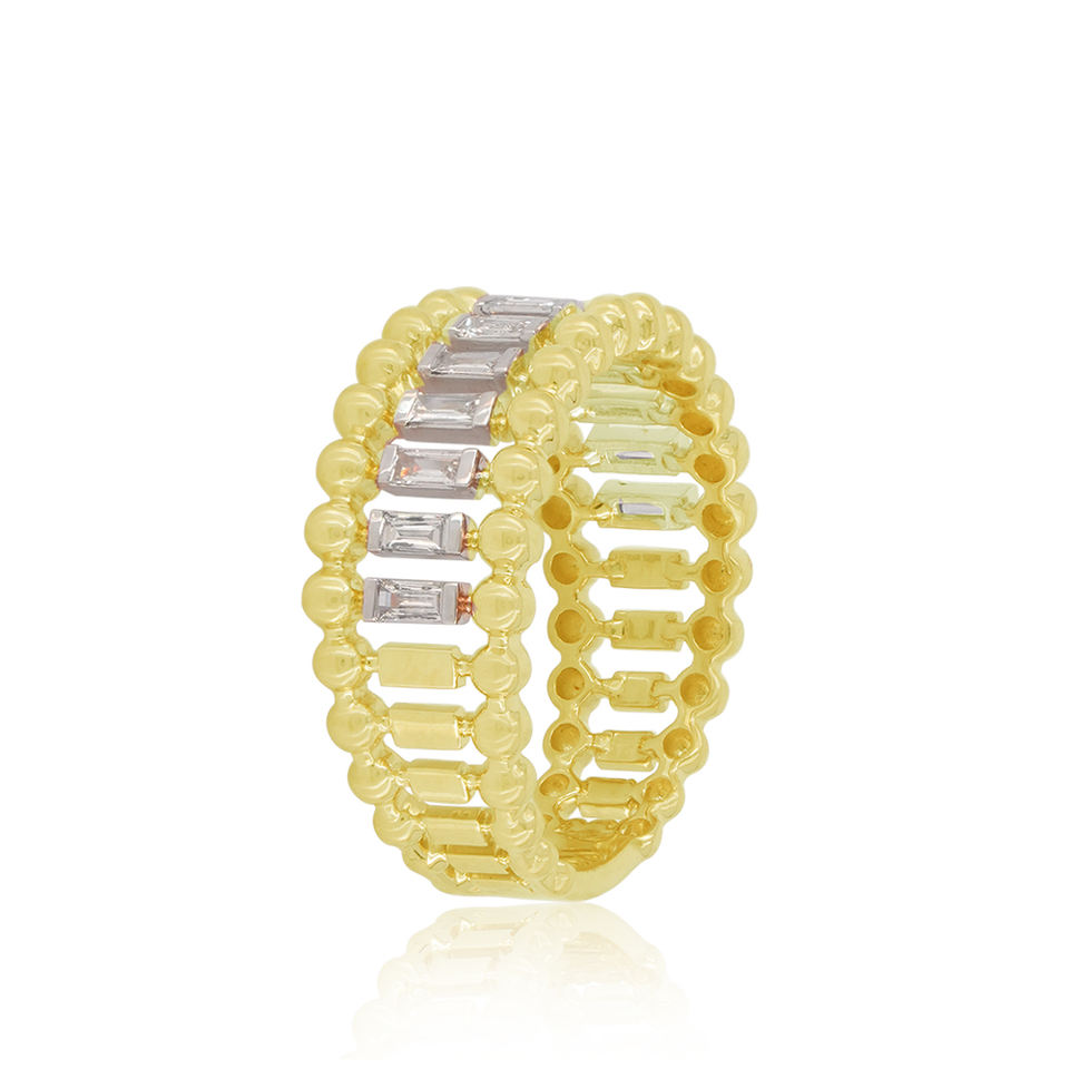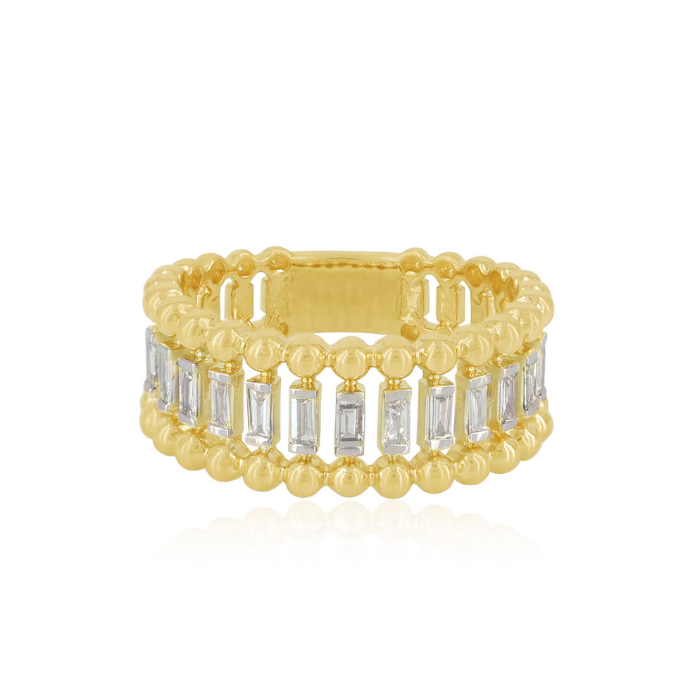 แหวนเพชรทรงเหลี่ยมครึ่งเรือนครึ่งสีทอง14K ทำด้วยมือเครื่องประดับชั้นดีขายส่ง