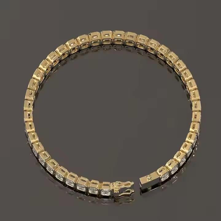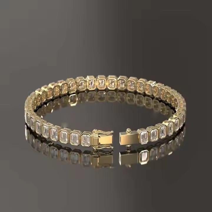 สร้อยข้อมือเทนนิสประดับเพชร14K สำหรับผู้หญิงสร้อยข้อมือเทนนิสเพชรตัดมรกตสร้อยข้อมือผู้หญิงเพชรมรกต