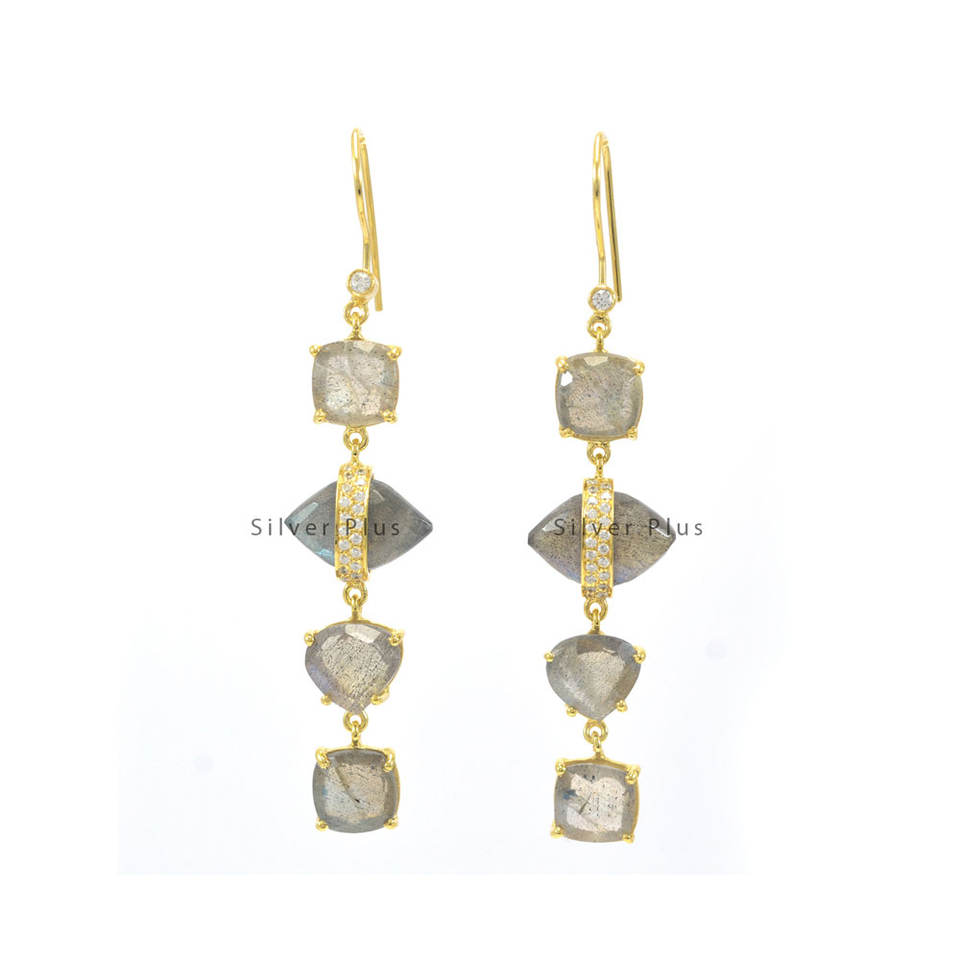 เพชรลาบราดอร์ไทต์ทอง 14k คุณภาพ Si เครื่องประดับแฮนด์เมดสี H ยาวในราคาขายส่ง
