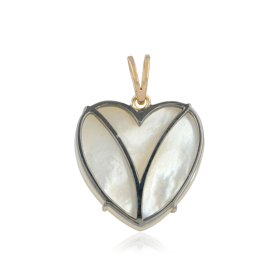 จี้รูปหัวใจประดับมุกและพลอยหลากสี 14k ทองคำแท้ พร้อมตัวเรือนเงินแท้ 925
