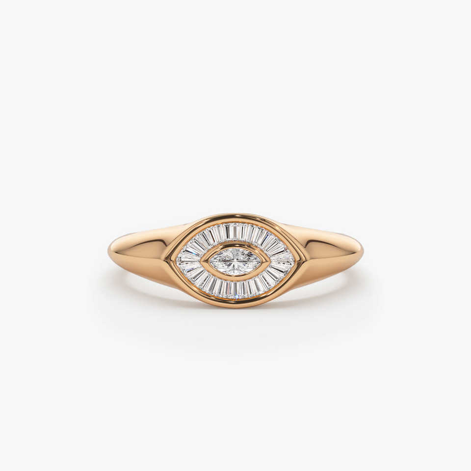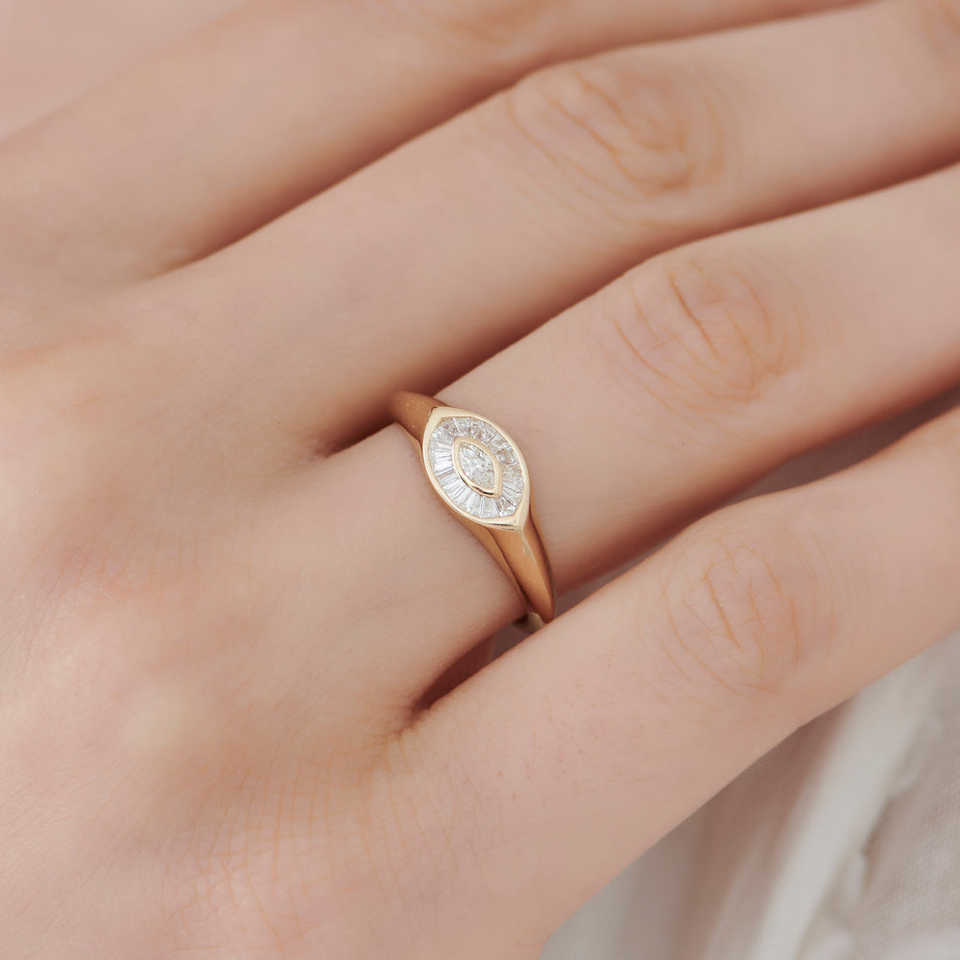 14K โกลด์มาร์คีส์ทรงบาแกตต์แหวนเพชรสีทองสีเหลืองสีขาวกุหลาบทองพร้อมแหวนเครื่องประดับเพชรธรรมชาติ