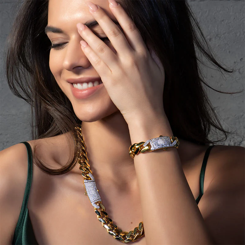 เครื่องประดับทองไมอามี่คิวบา14K สำหรับผู้ชายและผู้หญิงสร้อยข้อมือทองแท้สร้อยข้อมือเชื่อมโยงกับคิวบา
