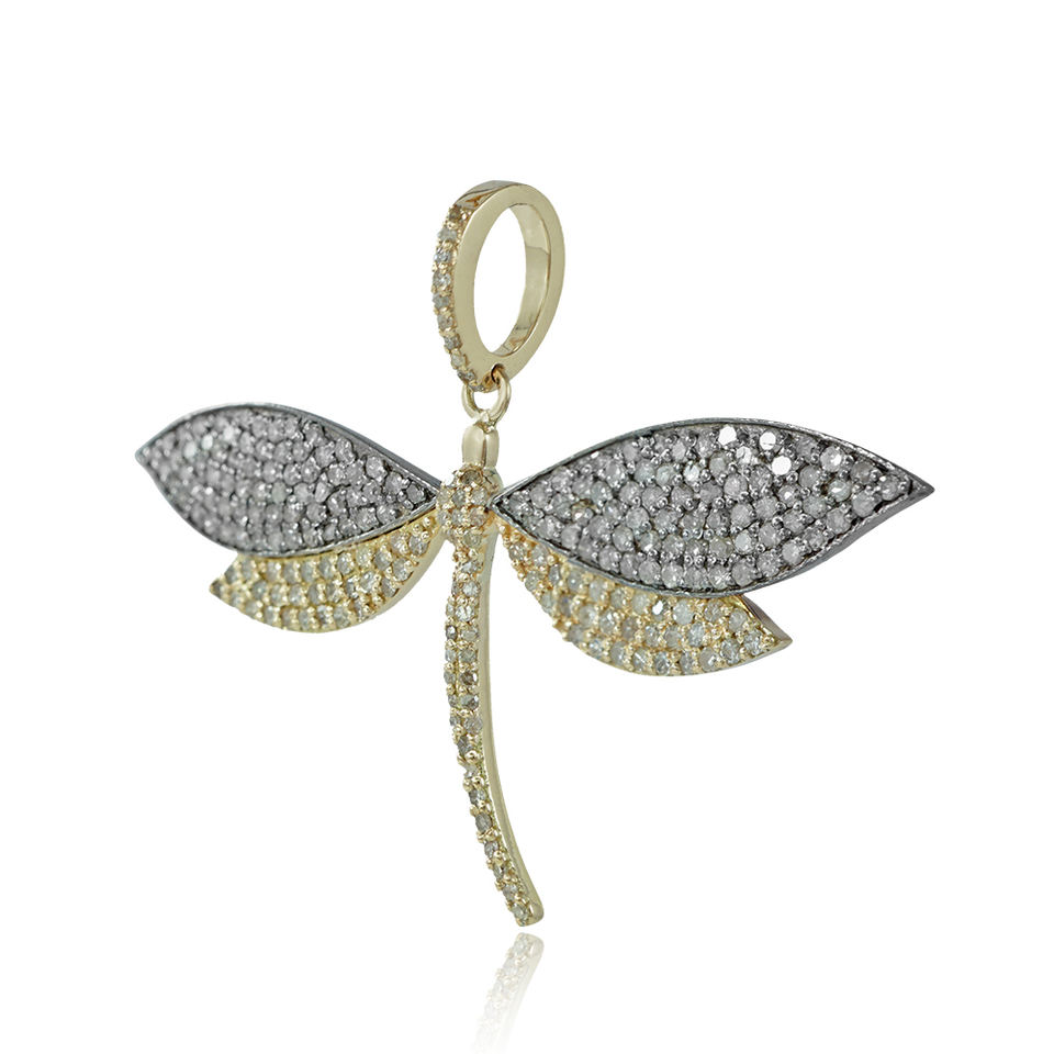 14พันทองปูเพชรออกแบบออกซิไดซ์925เงินแมลงปอจี้เครื่องประดับขายส่ง