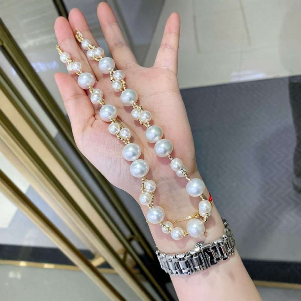 สร้อยคอมุกน้ำจืดชุบทอง 14k ชุดแฟชั่นสำหรับผู้หญิง สไตล์จีนเรียบง่าย สดชื่นและหอม