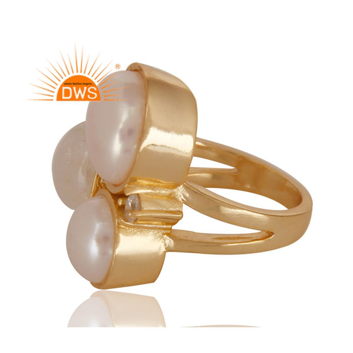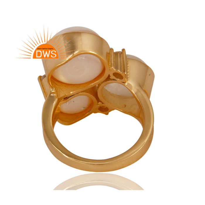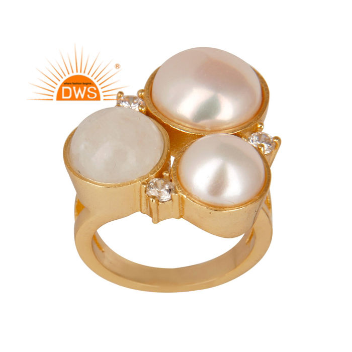 14พันทองชุบงบแหวนทองเหลืองธรรมชาติมูนสโตนและสีขาวมุกพลอยสีขาวเพทายแหวนเครื่องประดับแฟชั่น