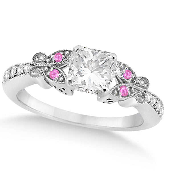 ชุดเครื่องประดับเจ้าสาวทองคำ 14k ประดับเพชรทรงเจ้าหญิงและไพลินสีชมพูรูปผีเสื้อ 1.21 กะรัต