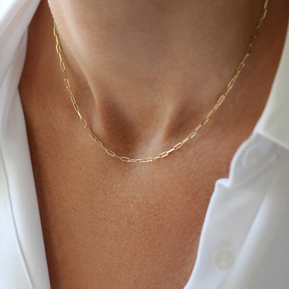 คลิปหนีบกระดาษเล็กๆสีทอง14K สร้อยคอเชื่อมแบบมินิมอลลิสต์ใส่ได้ทุกวันสร้อยคอแบบเรียบง่ายสำหรับโซ่แบบหนีบล็อค