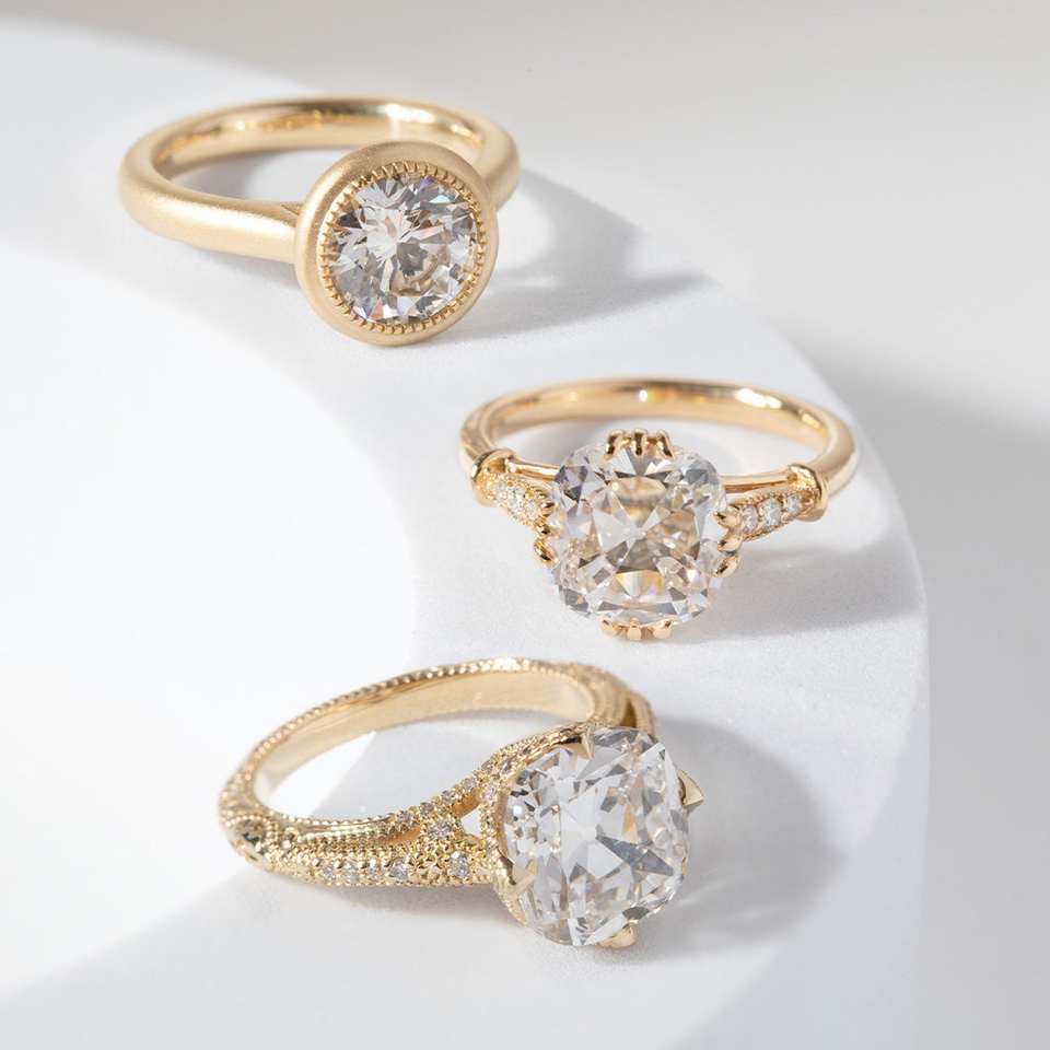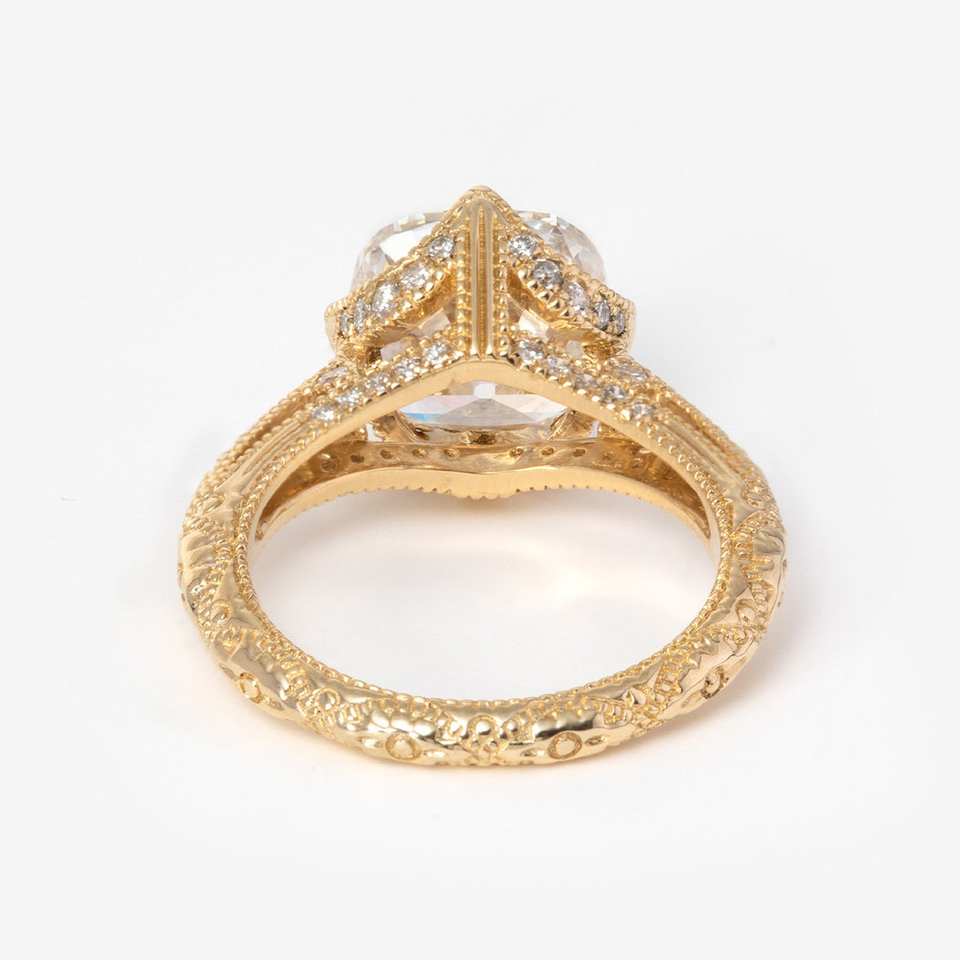 แหวนหมั้นเพชรเม็ดกลมแบบโบราณสำหรับผู้หญิง14K ทำด้วยมือสลักลายเหมืองเก่า