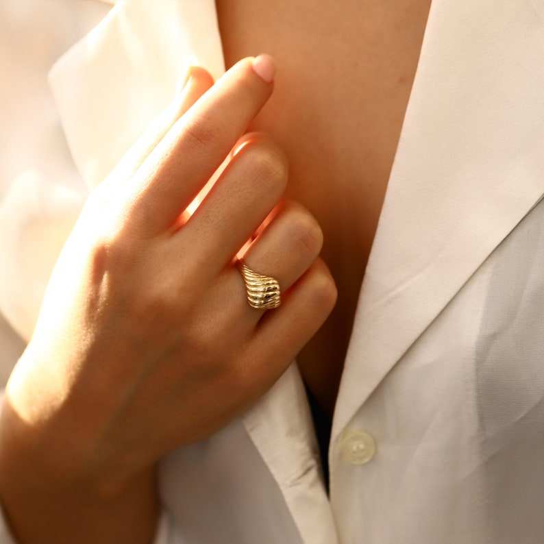 14K แหวนทองคำแท้สีเหลืองเข้มของขวัญคริสต์มาสและวาเลนไทน์สำหรับผู้หญิงแหวนทอง14K ออกแบบพิเศษเครื่องประดับทอง14K แหวนที่ระลึก