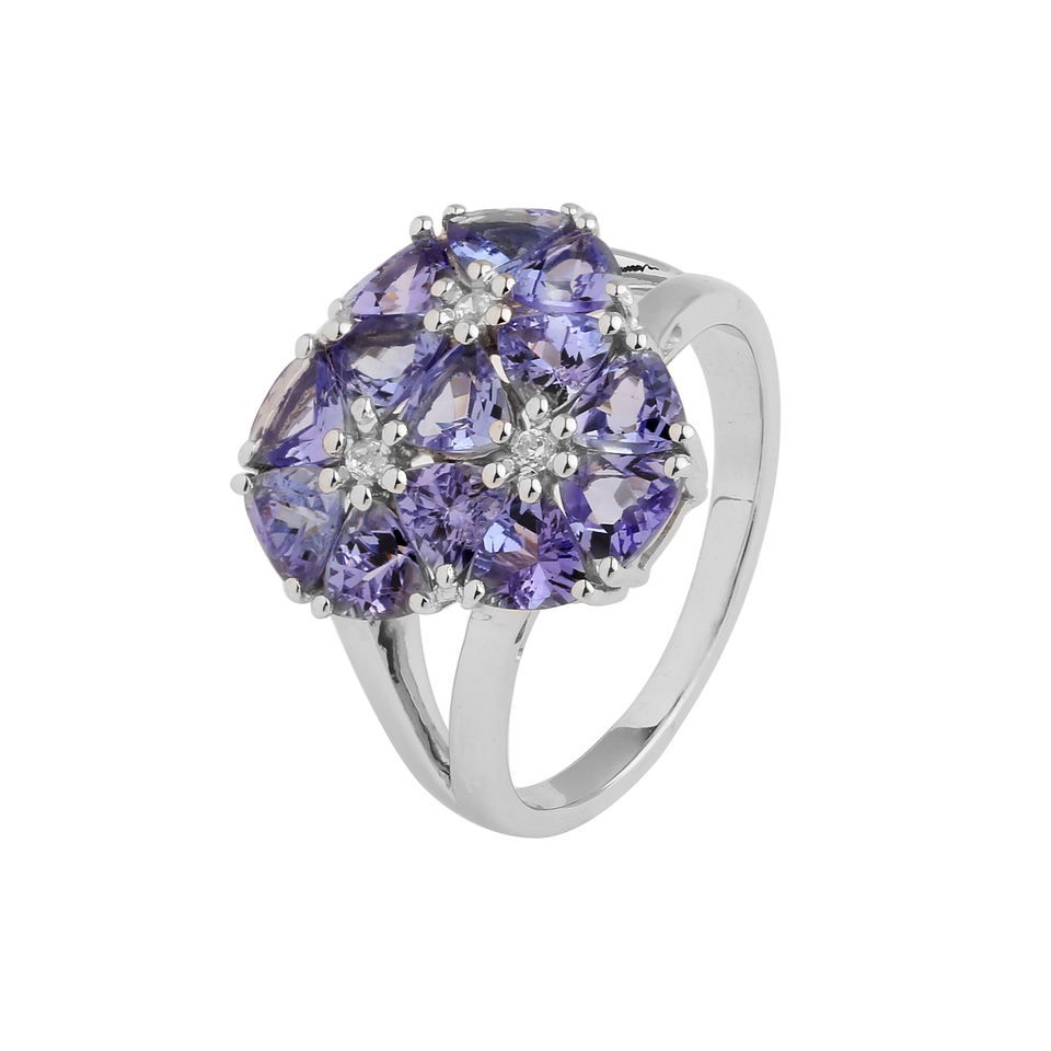 14k Real Yellow and White Gold Ring with Tanzanite Oval Cut Geometric Pattern Rhodium Plated Fine Jewelry
