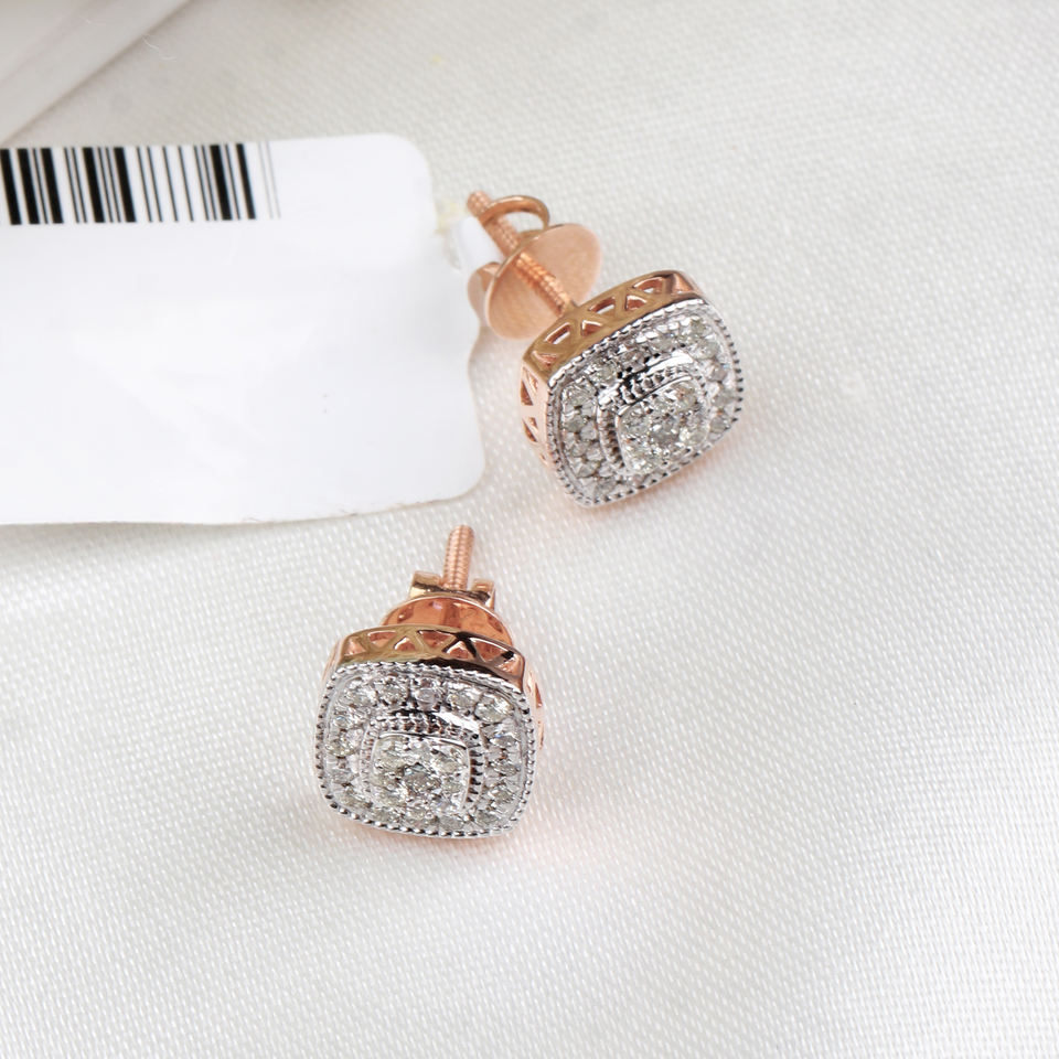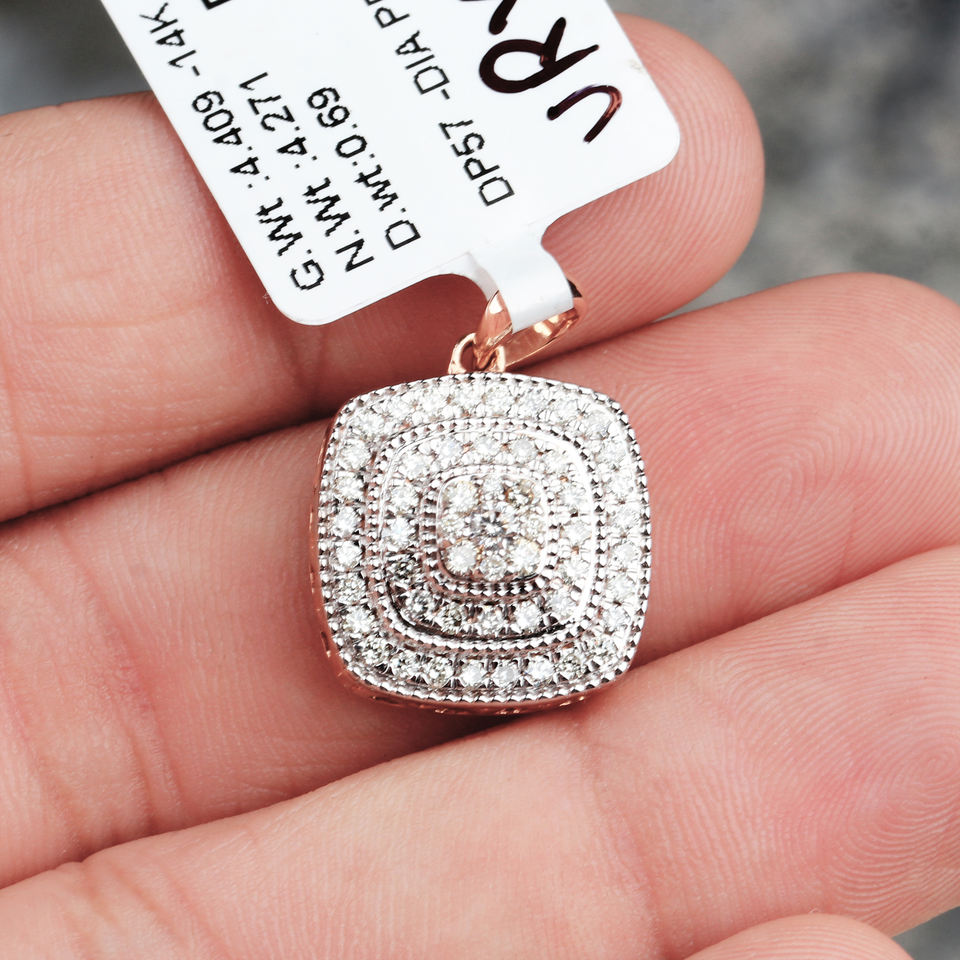 จี้และต่างหูทรงสี่เหลี่ยมประดับเพชรธรรมชาติสีโรสโกลด์14K เครื่องประดับแฮนด์เมดสำหรับผู้หญิงขายส่ง