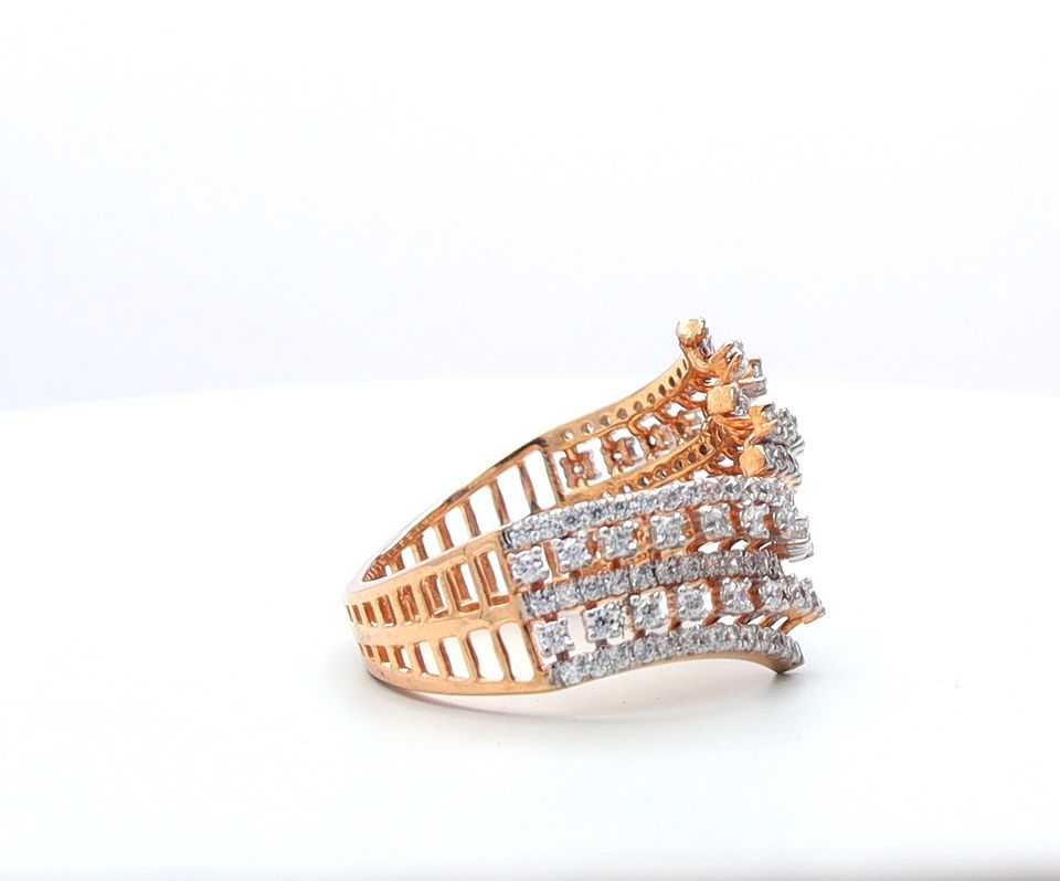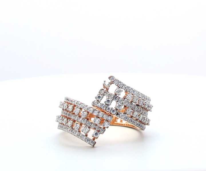 14K แหวนเพชรครอสโอเวอร์แบบเปิดสีโรสโกลด์ดีไซน์ร่วมสมัยพร้อมสายเพชรธรรมชาติหลายแถว
