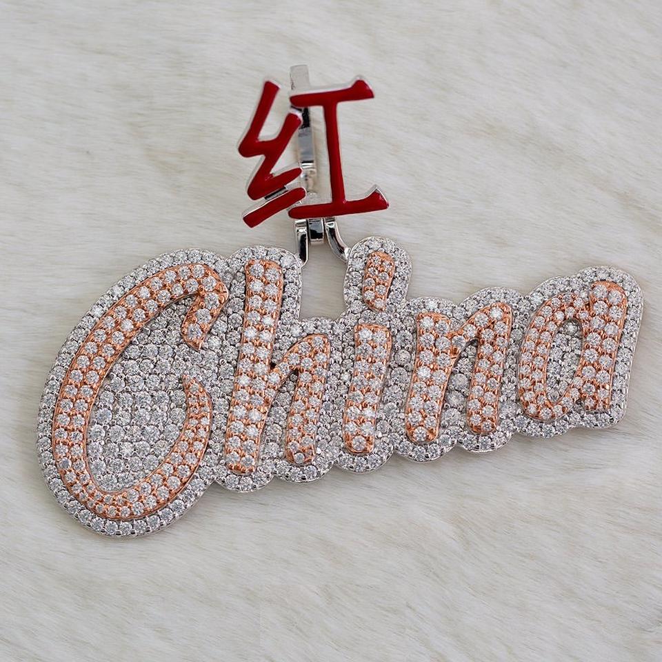 มีสไตล์ใหม่จี้เพชรสีโรสโกลด์14k ประดับฮิปฮอปเพชรเลียนแบบ925เงินเจ้าหญิงตัดเพชรโมอิสซาไนต์หลัก