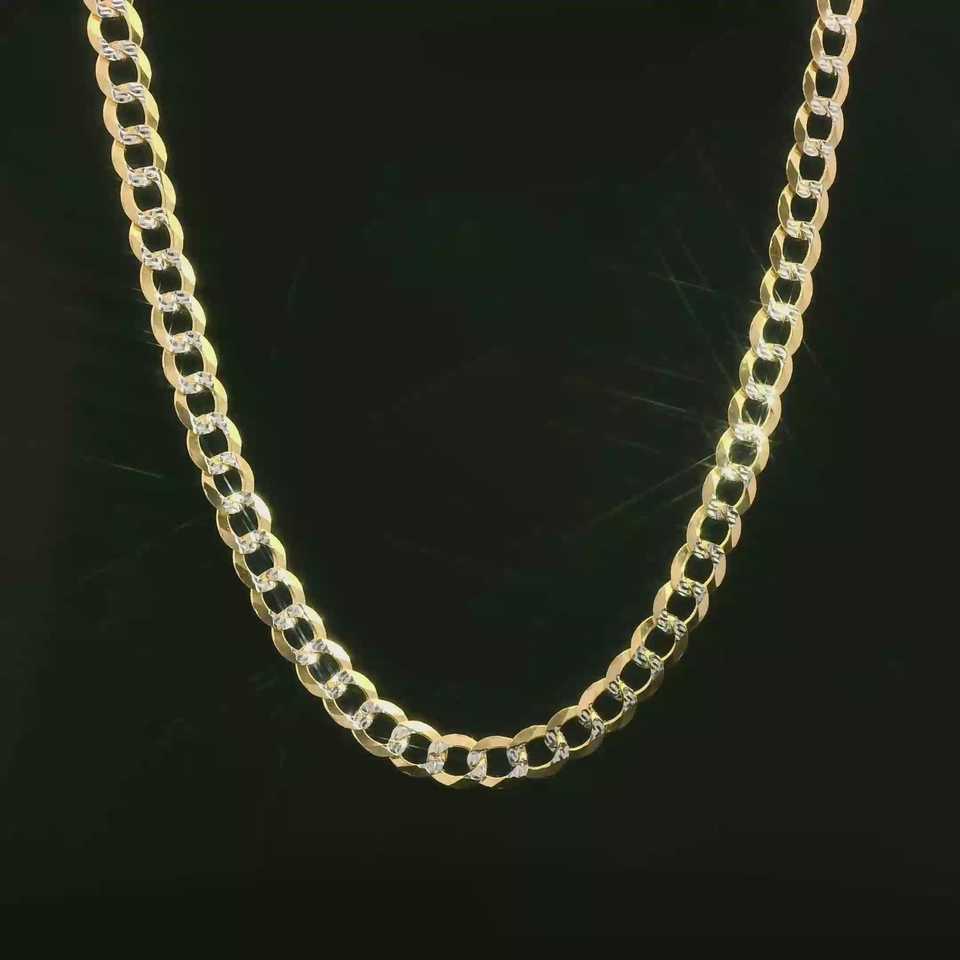 สร้อยคอสองสีทึบ14K สไตล์คิวบา4.5มม.-24นิ้วสำหรับผู้ชายสร้อยโชคเกอร์โซ่เชื่อมแบบคิวบาสำหรับผู้หญิงโลโก้ตามสั่ง