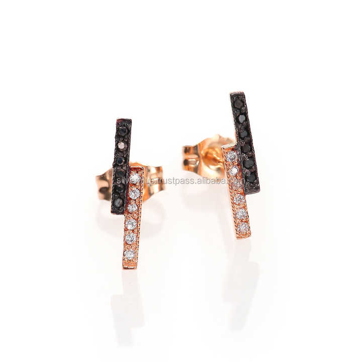 14K ต่างหูเม็ดกลมสีทองล้วน0.18 CT สีดำและสีขาวเพชรฝังหนามเตยเครื่องประดับใหม่