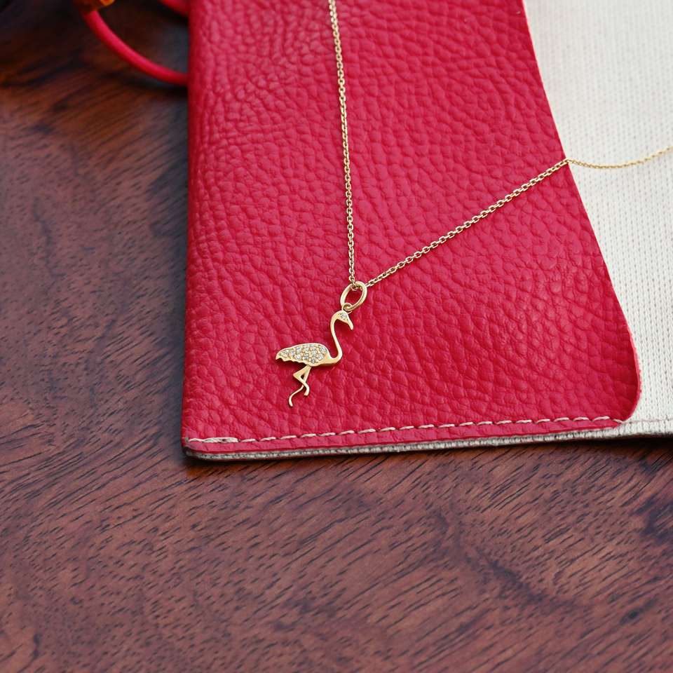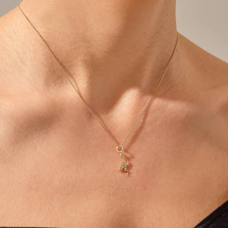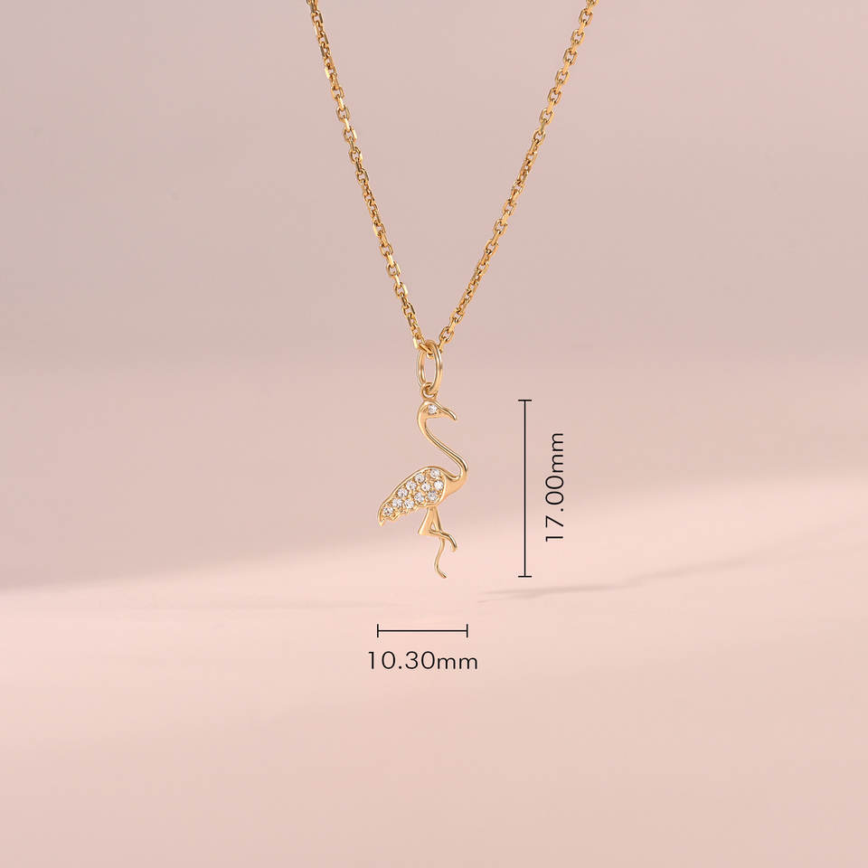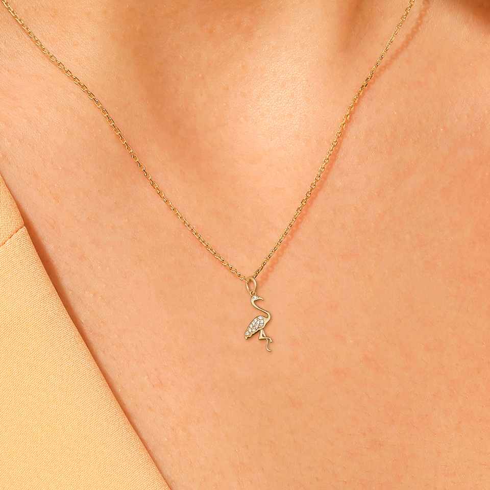 จี้สร้อยคอฟลามิงโกสีทอง14K ห้อยคอสไตล์มินิมัลลิสต์จี้รูปสัตว์ในชีวิตประจำวันพร้อมจี้และเสน่ห์ประดับเพชร VVS1