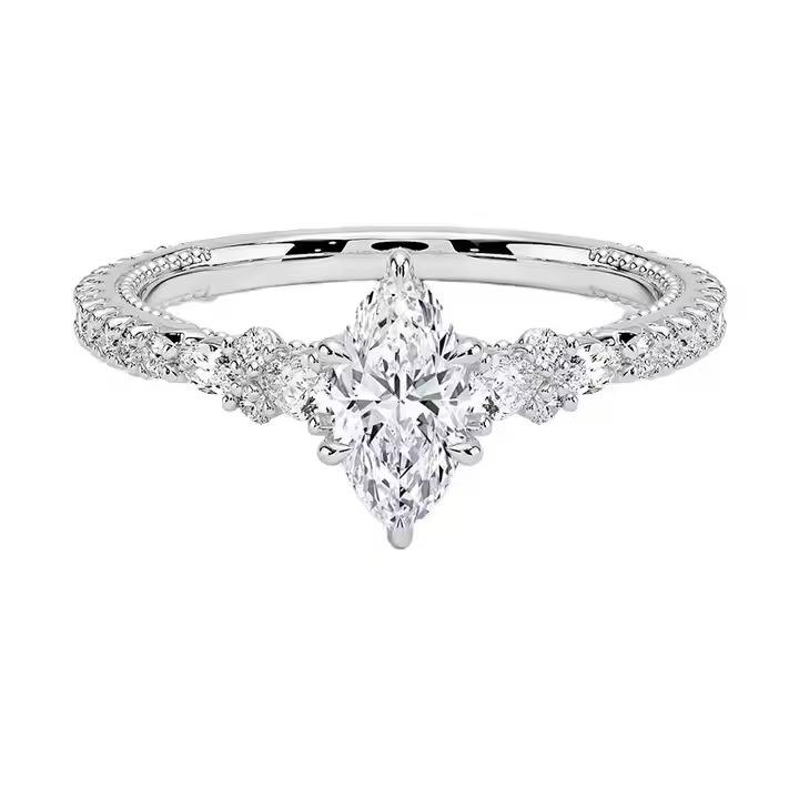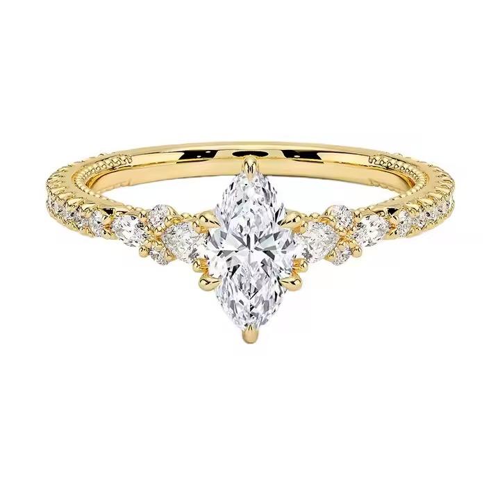 แหวนเพชรเม็ดเดี่ยวทรงมาร์คีส์ตัดเพชรสีทอง14K