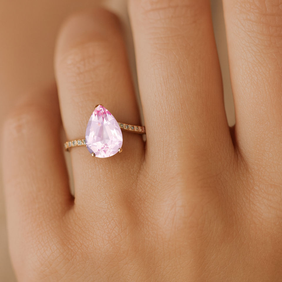 แหวนอัญมณีมอร์แกไนท์สีชมพูทอง14K แหวนหมั้นเพชรธรรมชาติแหวนแต่งงานออกแบบอย่างสวยงามแหวนเครื่องประดับชั้นดี