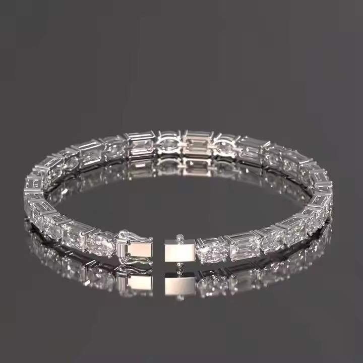 สร้อยข้อมือเทนนิสสีทอง14K สร้อยข้อมือเพชรรูปวงรีทรงมรกตสำหรับผู้หญิงและผู้ชาย