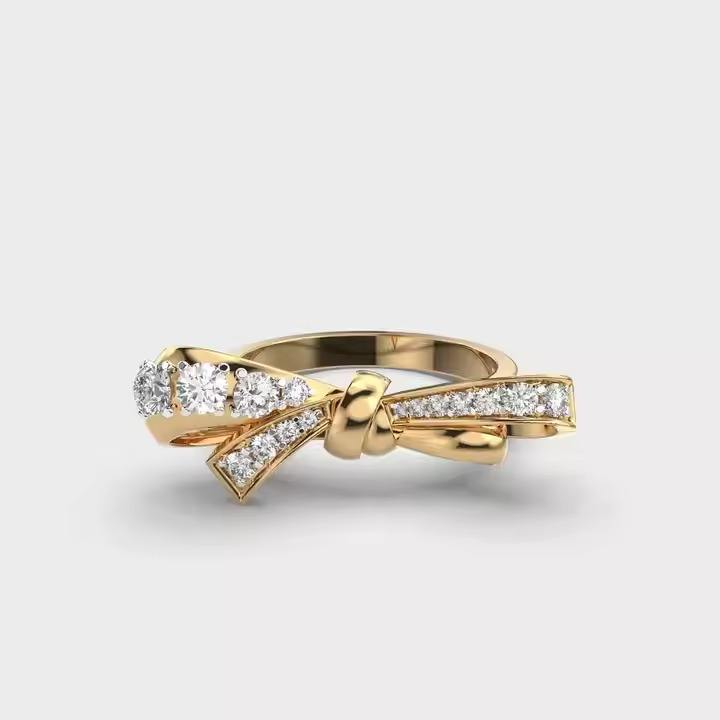 14k Solid Gold Wedding Ring Bow Style Exclusive Diamond Ring 1 Carat Round Cut Lab Grown Diamond Engagement Ring for Girlfriend