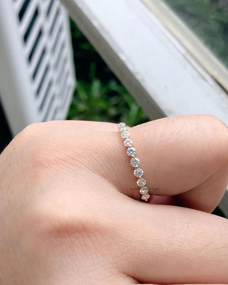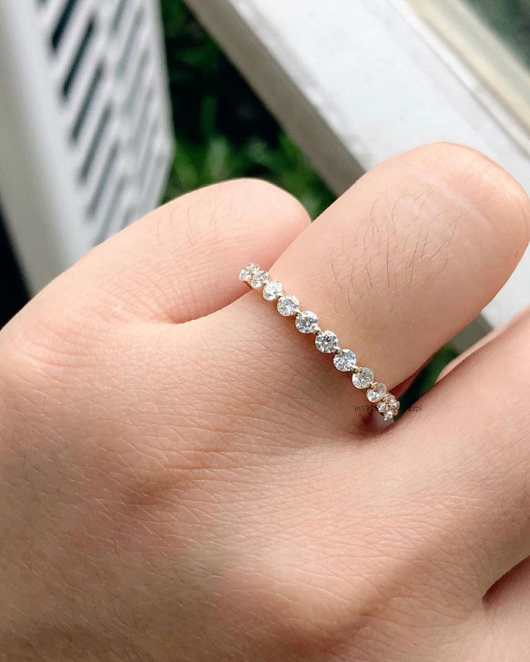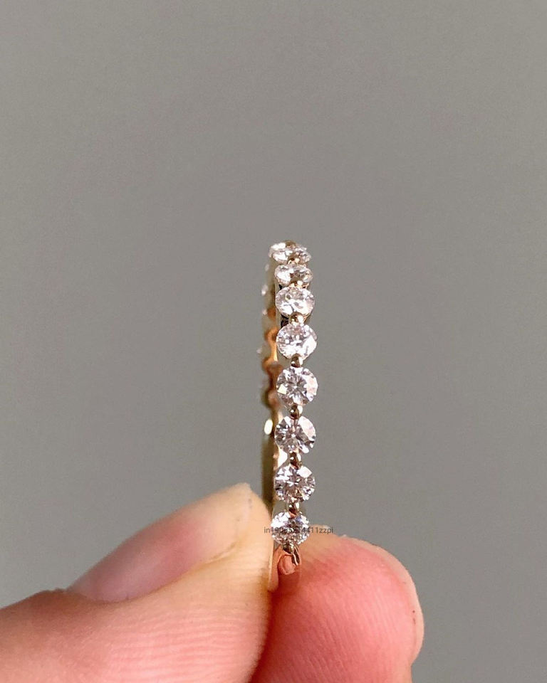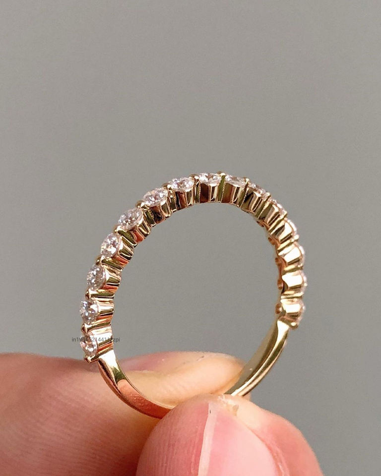 14K แหวนเพชรโมอีสสีโรสโกลด์ขนาด2.0มม. ดีไซน์แบบครึ่งใช้ร่วมกันง่ามจับคู่แหวนพลอย
