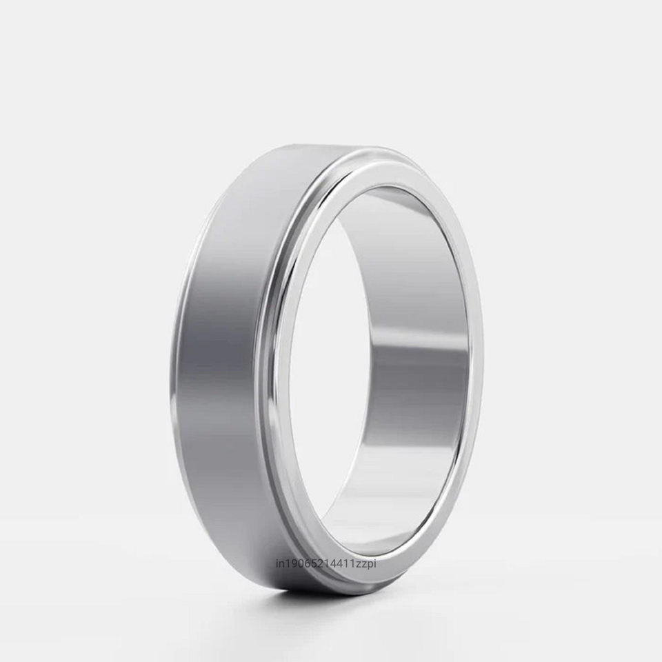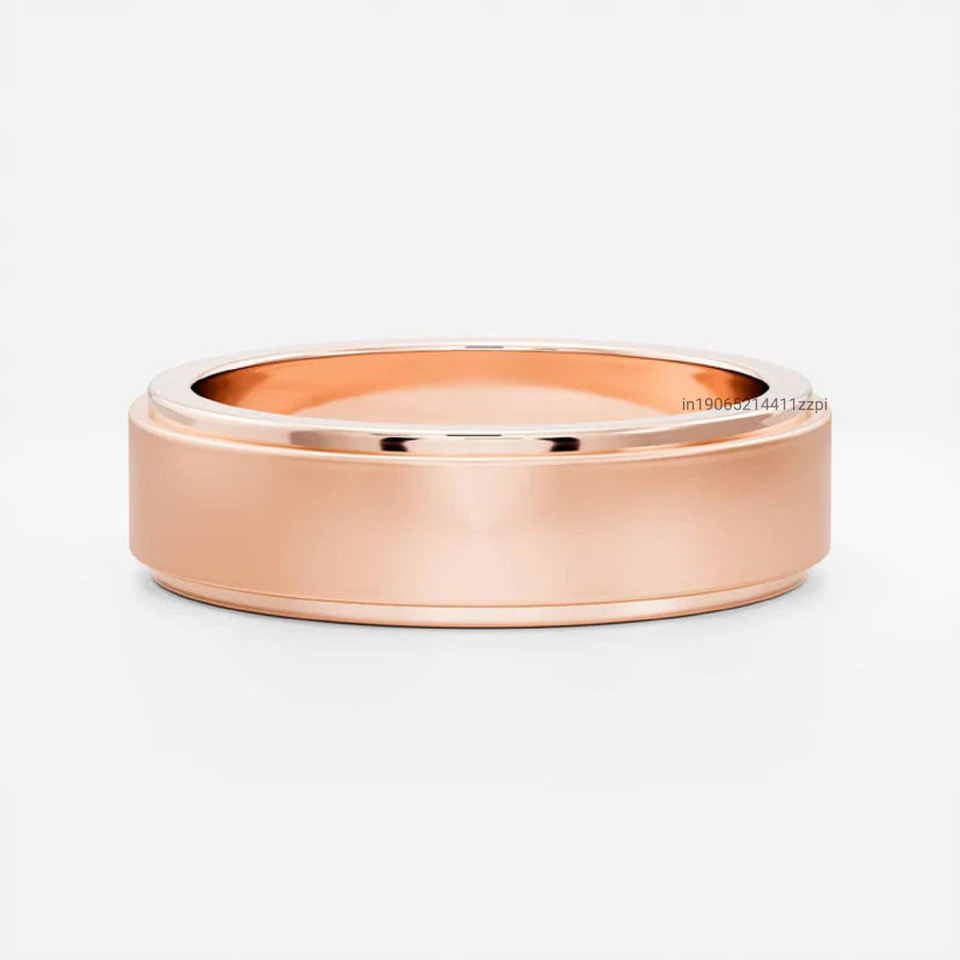 Unisex 14K แหวนแต่งงานทองคำแข็งสีเหลืองกว้าง5มม. แปรงกลางขอบ beveled แหวนซ้อนที่ทันสมัยสำหรับเขาแหวนพลอย