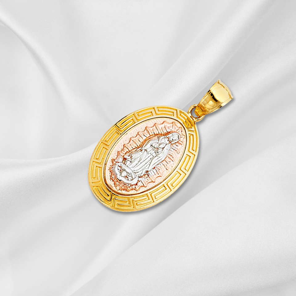 เครื่องประดับแฟชั่นสามโทนสีทองสำหรับเด็กจี้กัวเดอลูเปอร์14K ประดับเพชรและทองแดงสำหรับศาสนาของเรา