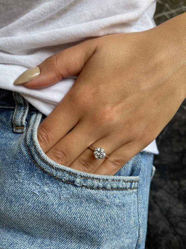 แหวนหมั้นเพชรเม็ดเดี่ยว14K 2กะรัตได้รับการรับรองจากอี VS1แหวนเพชรรอบห้องปฏิบัติการที่ยอดเยี่ยมตัดเพชร