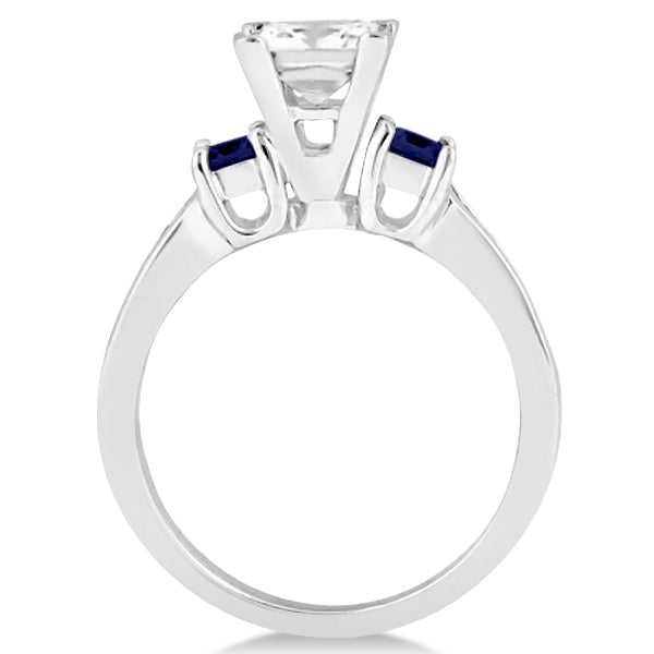 14k White Gold Blue Sapphire Three Stone Engagement Ring 0.62ct Diamond Jewelry