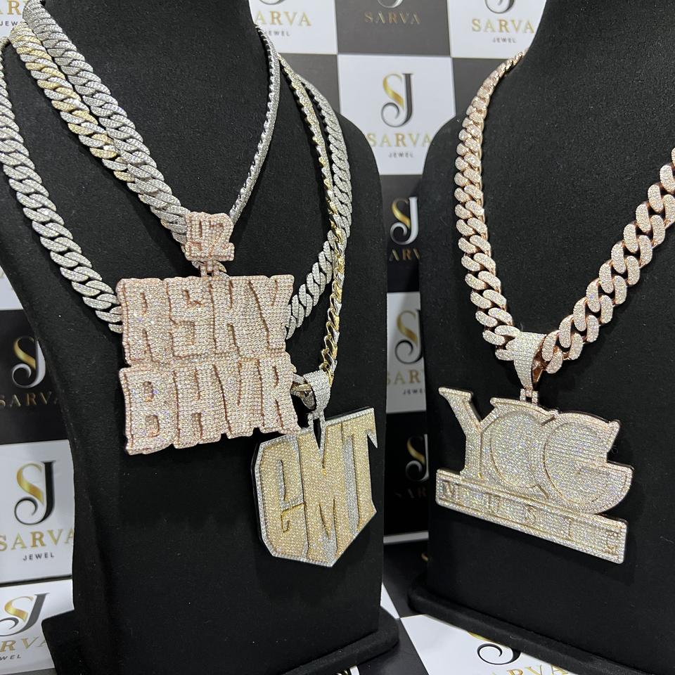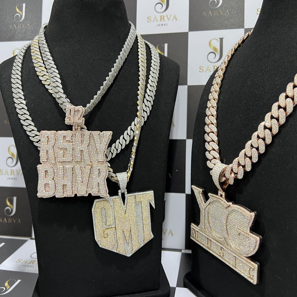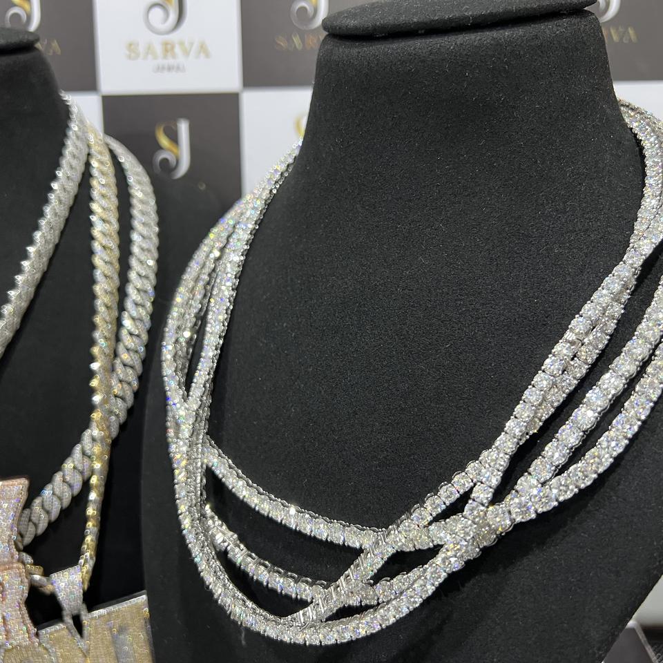 สร้อยคิวบาลทองคำขาว 14k ประดับเพชรแล็บโกรนทรงบริลเลียนต์คัต ได้รับการรับรองจาก IGI พร้อมเพชรโมอิสซาไนต์แบบสั่งทำพิเศษประดับด้านข้าง สร้อยคอเงินแท้ 925