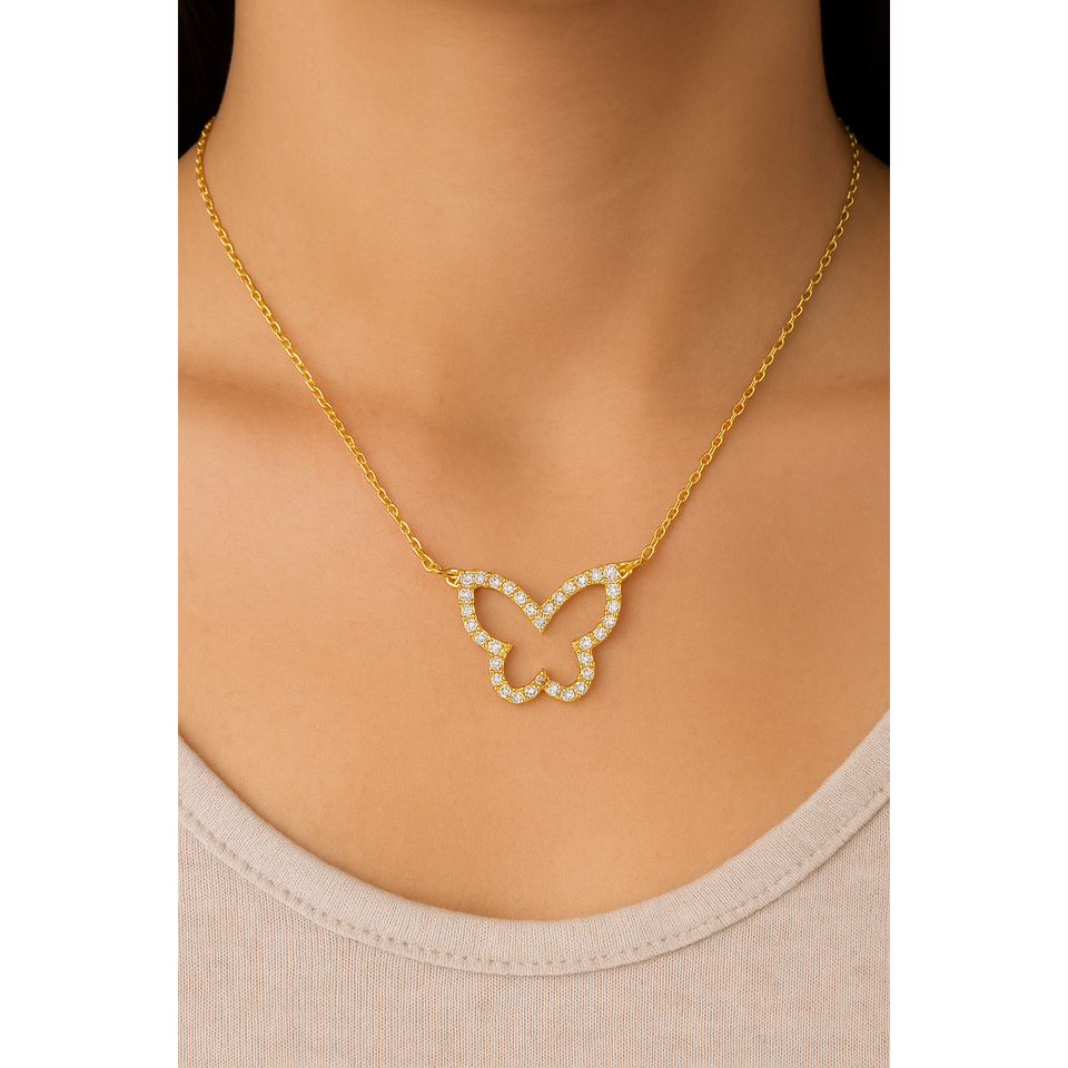 สร้อยคอโซ่ผีเสื้อสีเหลืองทอง14K พร้อมเพชรธรรมชาติของขวัญหรูหราสำหรับผู้หญิง