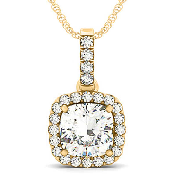 สร้อยคอจี้เพชรทรงคุชชั่นประดับด้วยทองคำ 14k สีเหลือง น้ำหนัก 3.00 กะรัต ดีไซน์หรูหราและสง่างาม