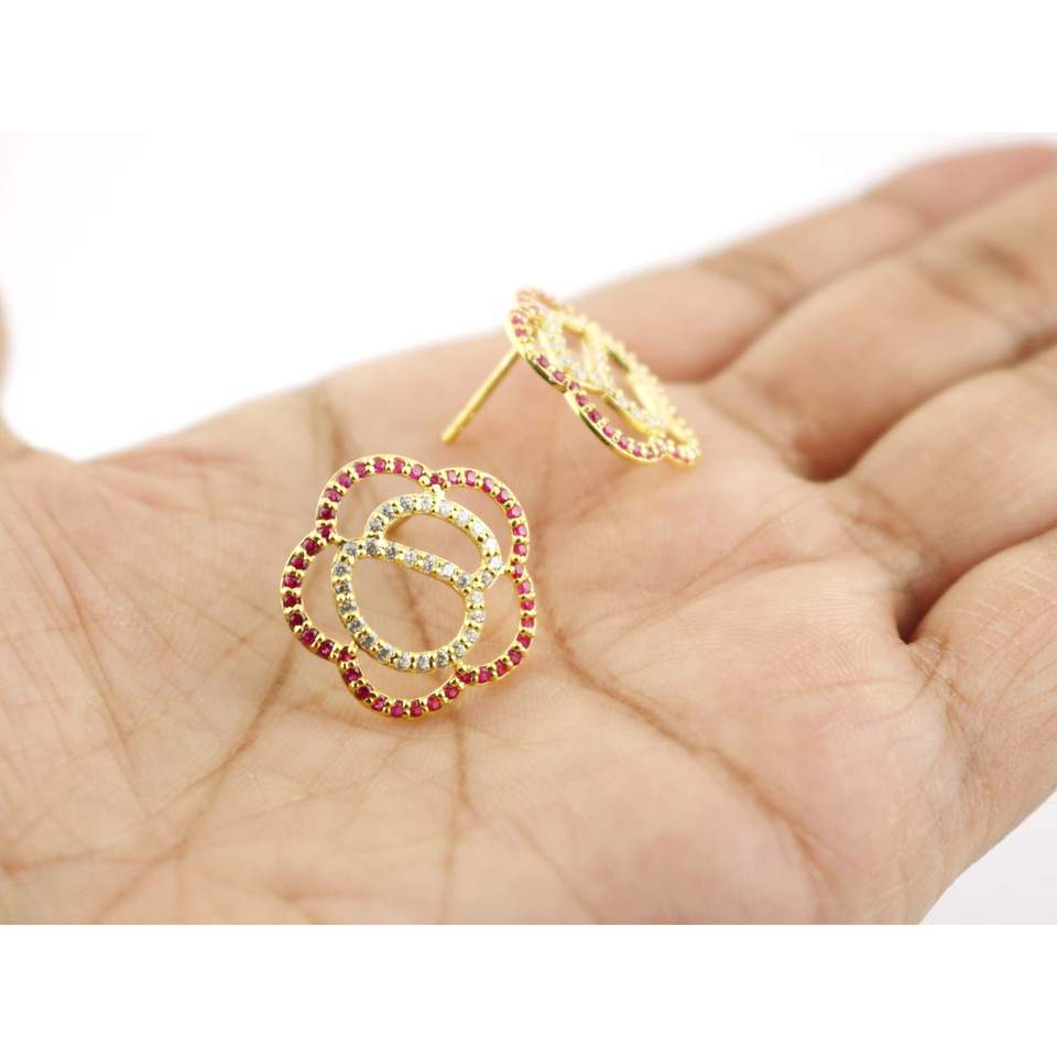 ต่างหูเม็ดกลมทองสีเหลือง14K ประดับเพชรแท้หรูหราและหรูหรา