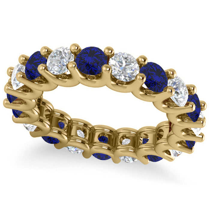 แหวนแต่งงานผู้ชายทองคำ 14k สีเหลือง ประดับเพชรและไพลินสีน้ำเงิน (3.53 กะรัต) เครื่องประดับชั้นดี ชุบโรเดียม ตัดแบบพิเศษ รับประกันคุณภาพ