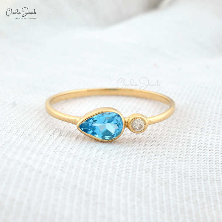 ชุดฝาทอง14K สีเหลืองขนาด2มม. แหวนเพชรและลูกแพร์ตัดจากสวิสสีน้ำเงินบุษราคัมเครื่องประดับหินละเอียดขายส่งจากอินเดีย