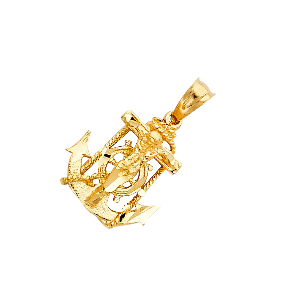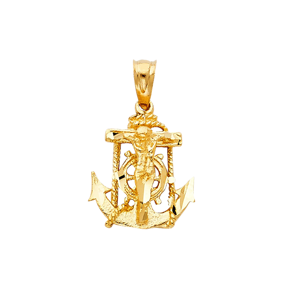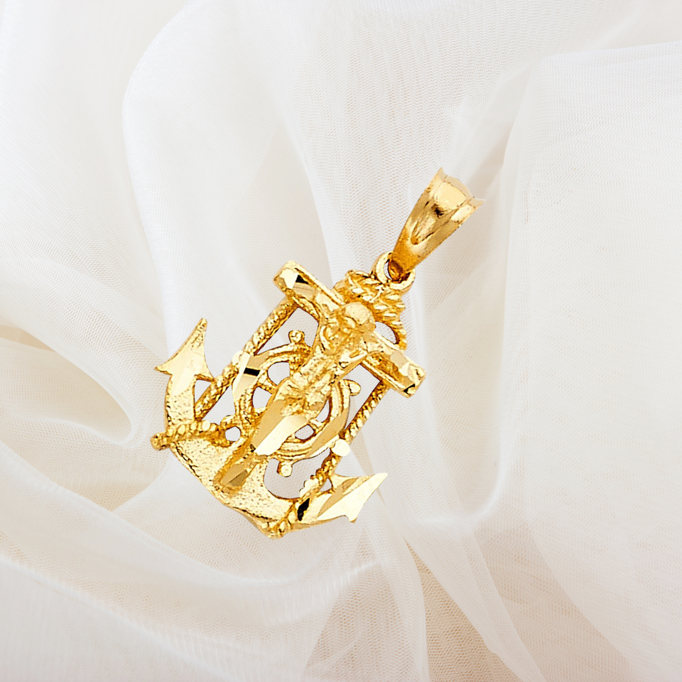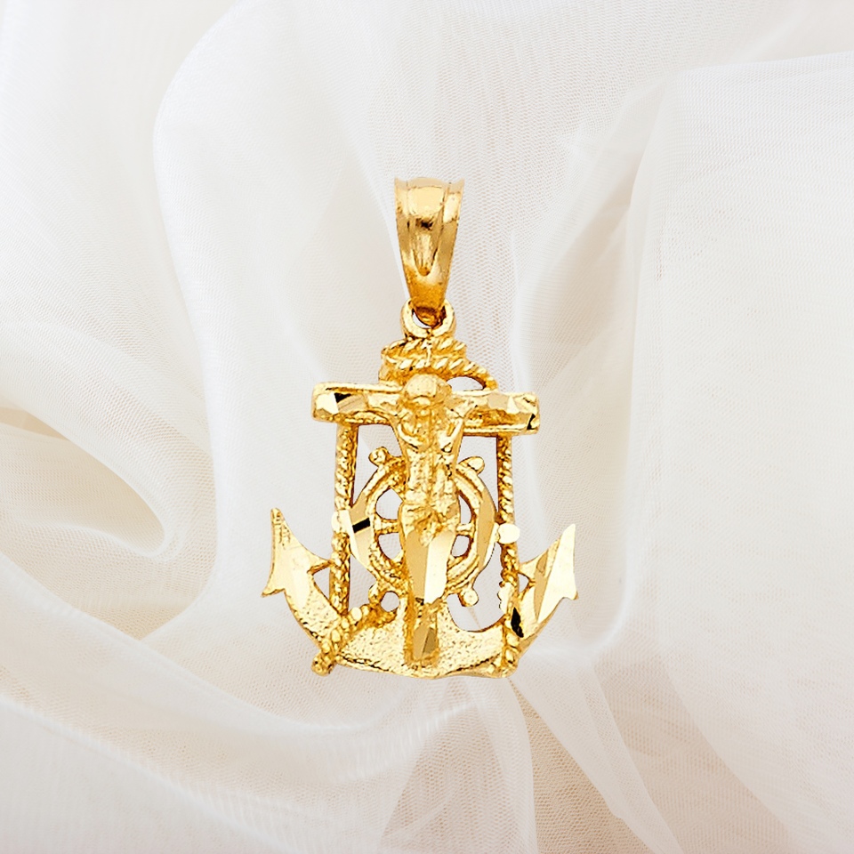 14k Yellow Gold Plated Mariner Religious Crucifix Fancy Trendy Unique New Design Faithful Jesus Cross Pendant Children Zircon