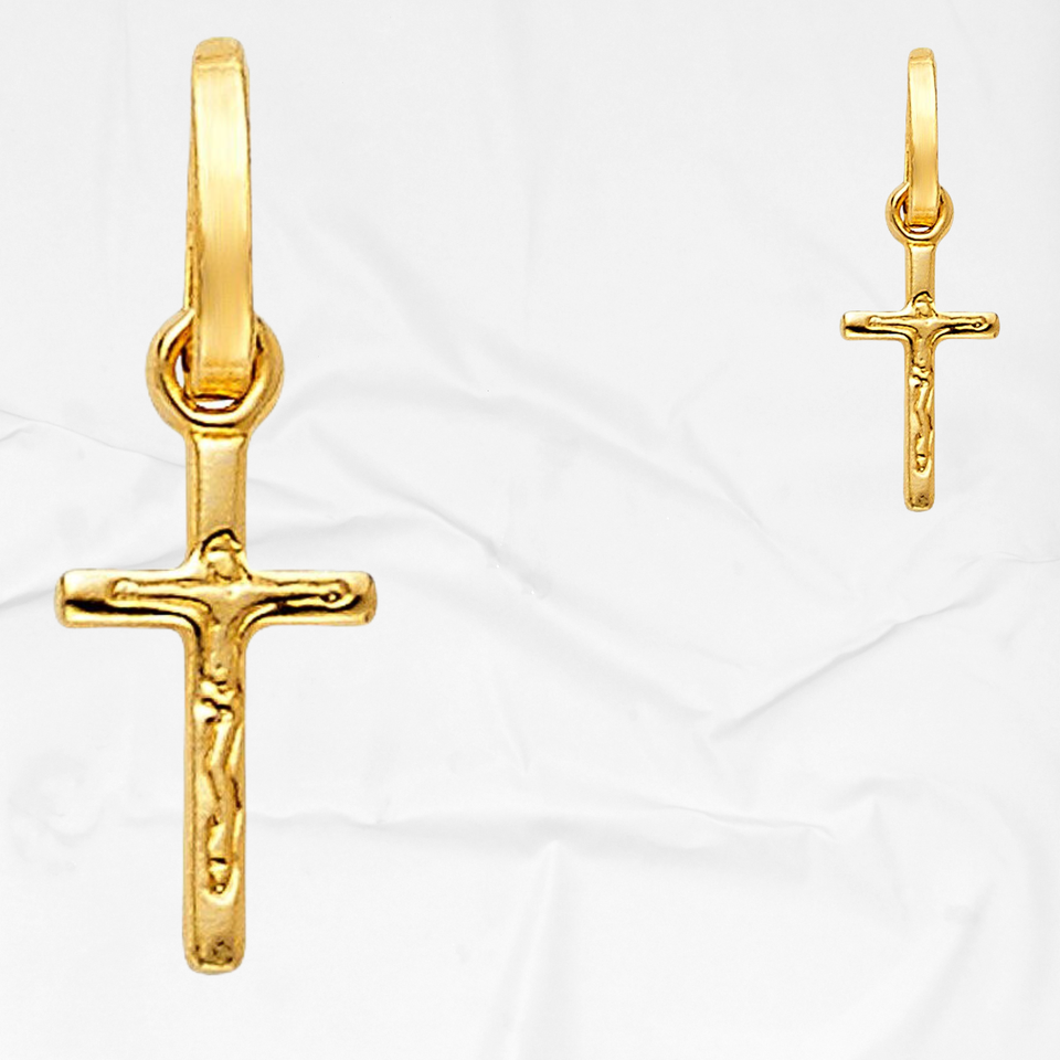 14k Yellow Gold Religious Crucifix Cross Pendant Elegant Unique Design with Luxury Jewelry Silver with Heart and Star Pattern