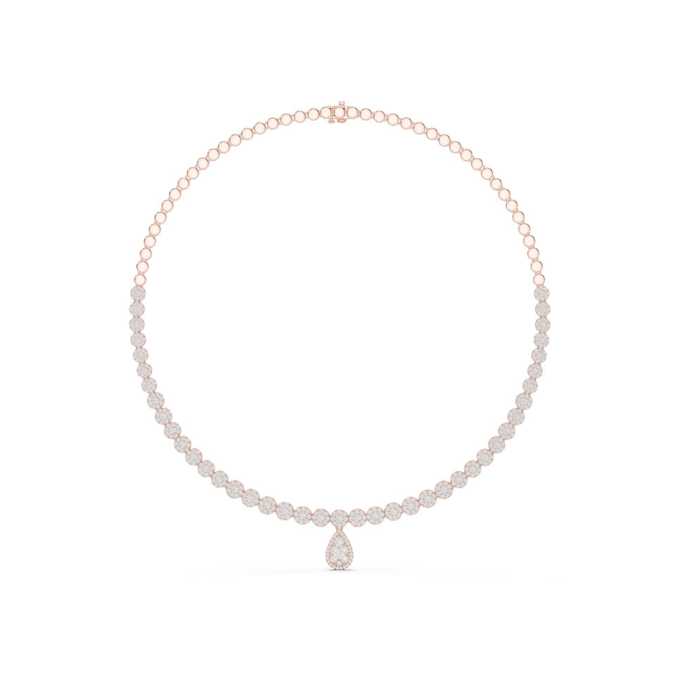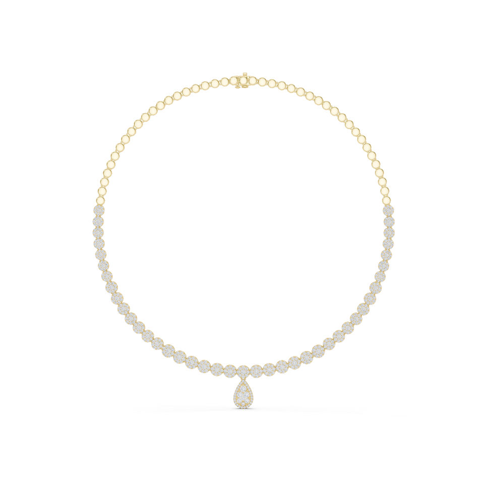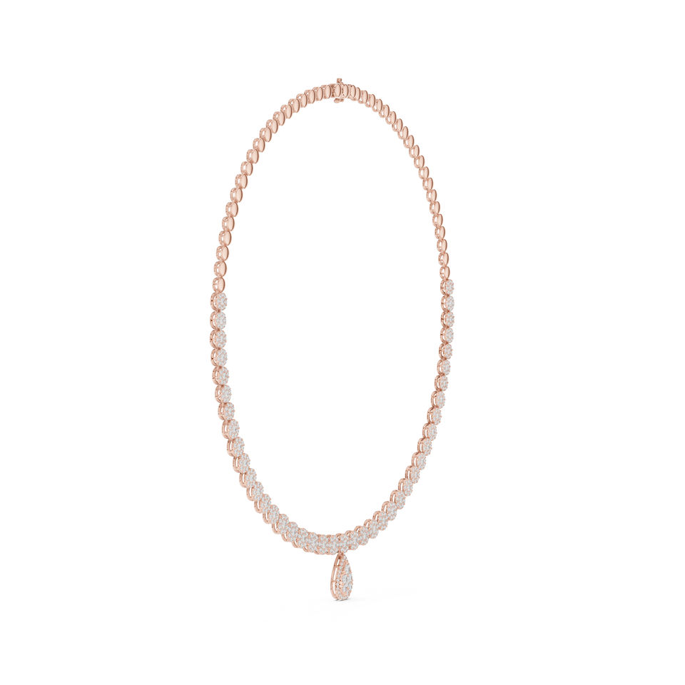 สร้อยคอเพชรทรงกลมทองคำ 14k สำหรับเจ้าสาว ประดับเพชรเพาะเลี้ยงในห้องปฏิบัติการ สำหรับผู้หญิง | เพชรที่เพิ่งเพาะเลี้ยง