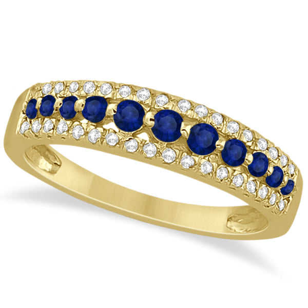 แหวนแต่งงานทองคำ 14k สามแถว ประดับด้วยไพลินสีน้ำเงิน 0.63 กะรัต และเพชร
