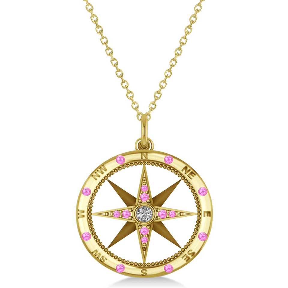 จี้ทองคำ 14k สีเหลืองและสีโรสโกลด์ ชุบโรเดียม ดีไซน์เข็มทิศทันสมัย ประดับด้วยพลอยแซฟไฟร์สีชมพู เพชร และเพทาย 0.19 กะรัต พร้อมไข่มุก